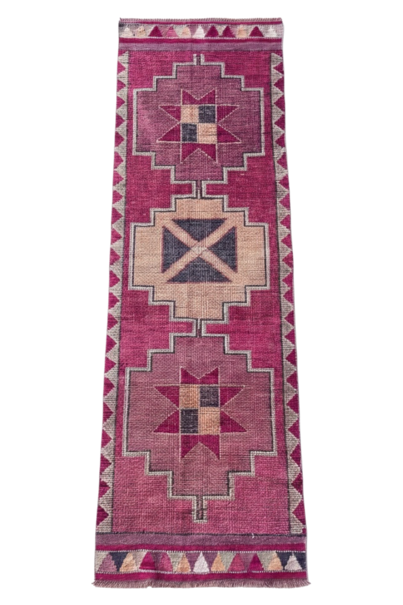 The "Zaidee" rug (one of our personal favs). Huge handwoven Turkish runner. The most magnificent variety of pink and purple shades with gray and ivory accent colors. Hand-knotted rug using the finest weaving techniques. 100% wool rug.